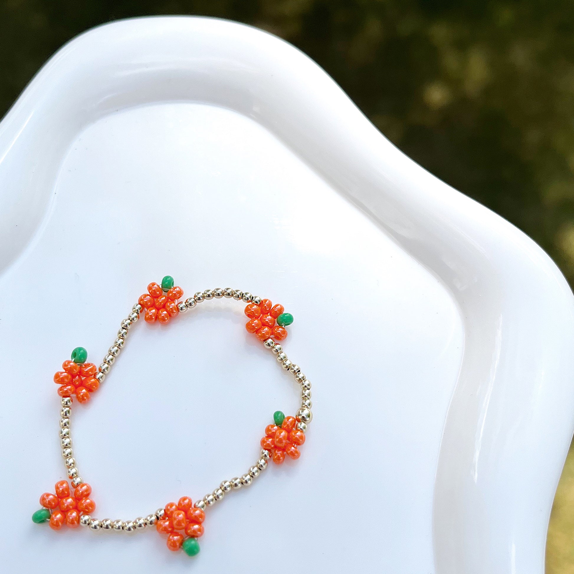 Pumpkin season is here and we’re so ready! Glass chrome seed beads and 14k gold filled beads
