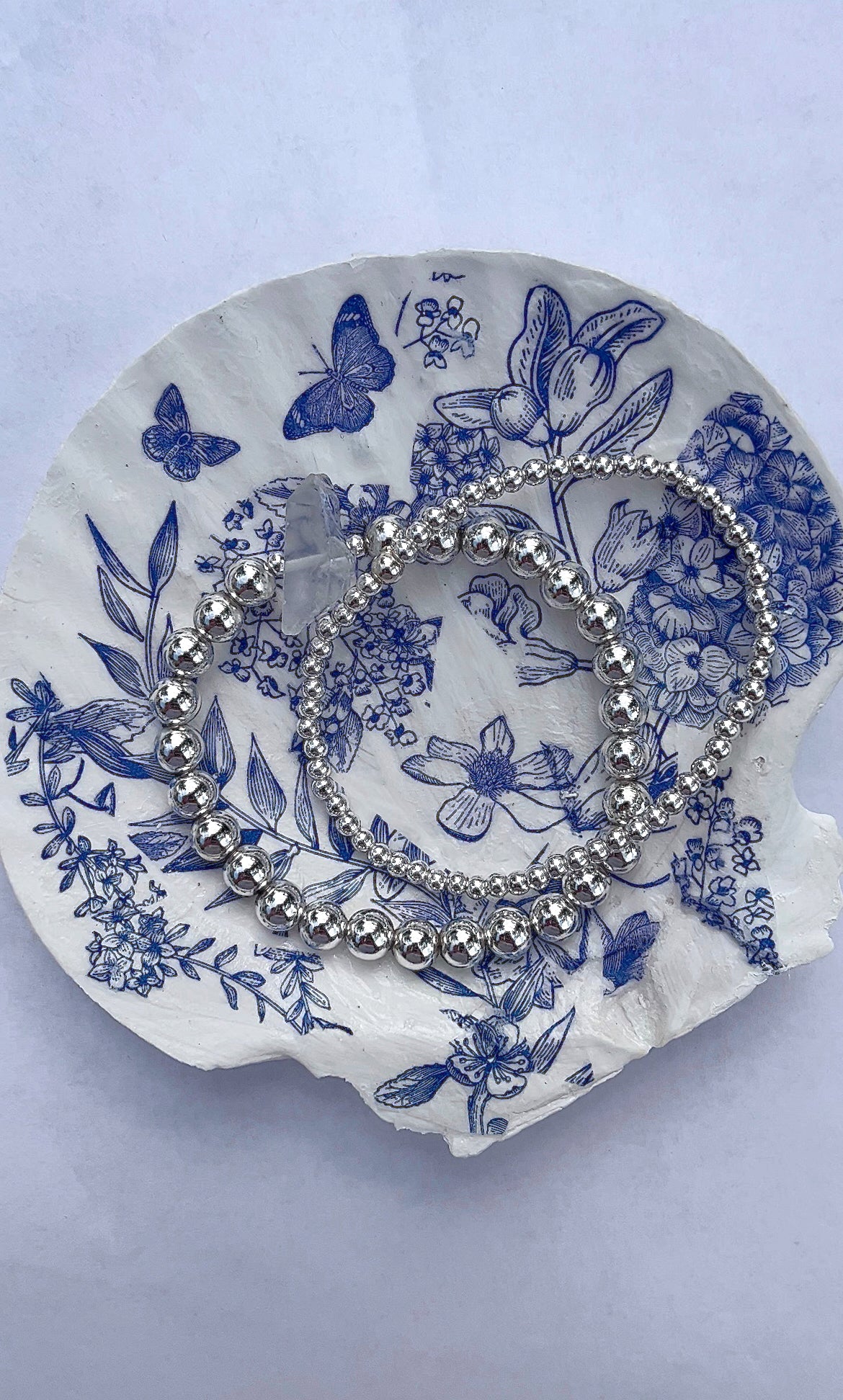 6mm silver hematite + selenite crystal